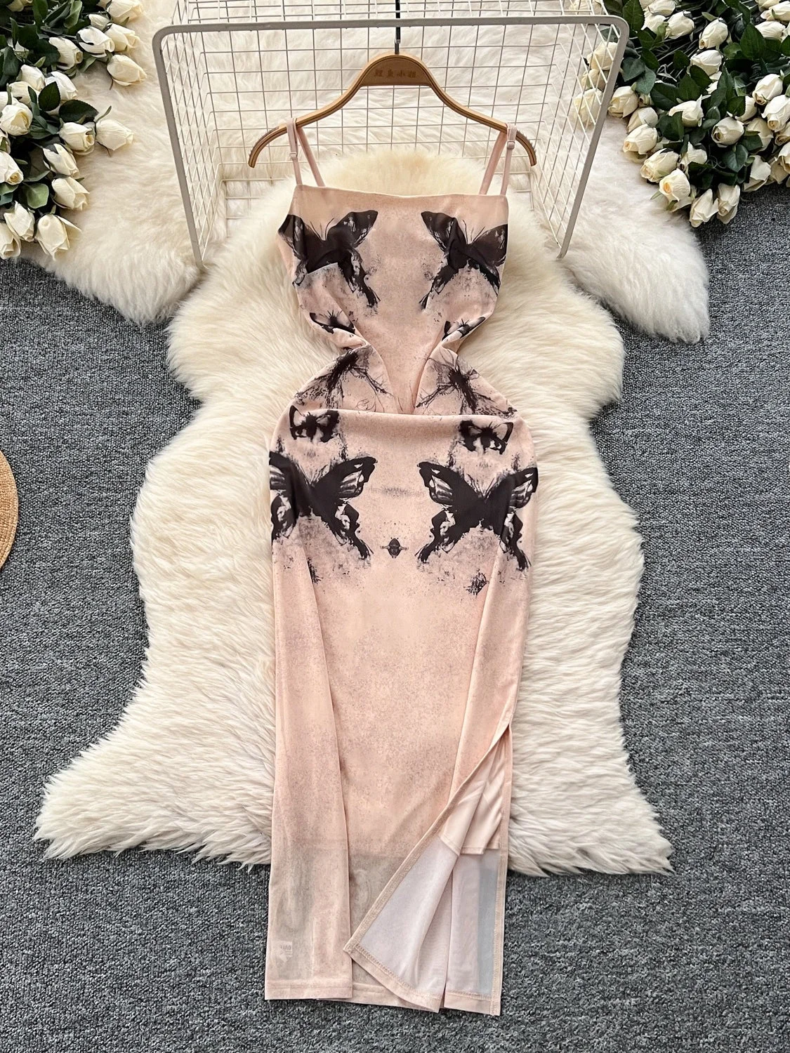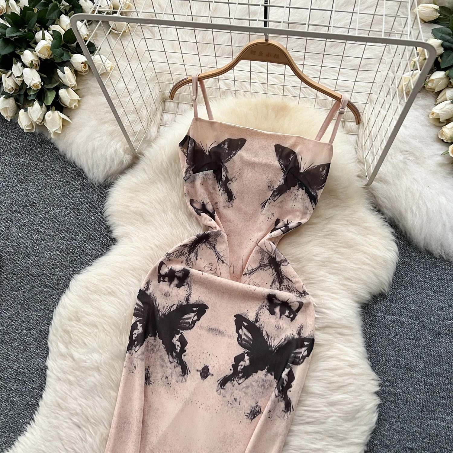 Effortlessly elegant and feminine, this butterfly – printed dress is a dream for the woman who desires to exude charm without compromising comfort. The dress features a graceful silhouette with a fitted bodice and a flowing skirt, flattering a range of body shapes. The lightweight, airy fabric feels delightful against the skin, keeping you at ease throughout any event. The delicate butterfly patterns add a whimsical touch, while the adjustable straps allow for a personalized fit. The high – slit design offers a hint of allure, perfect for those who appreciate a touch of sophistication. Whether you’re heading to a romantic dinner, a garden party, or a casual outing, this dress will soon become your favorite. Its enchanting design makes it suitable for both daytime and evening wear.